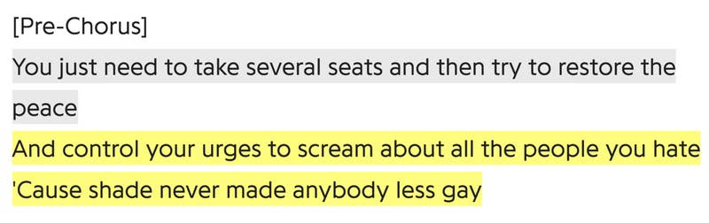 But the thing fans are freaking out about most — and rightly so — is the second verse, where Taylor punches homophobia in its metaphorical face.
